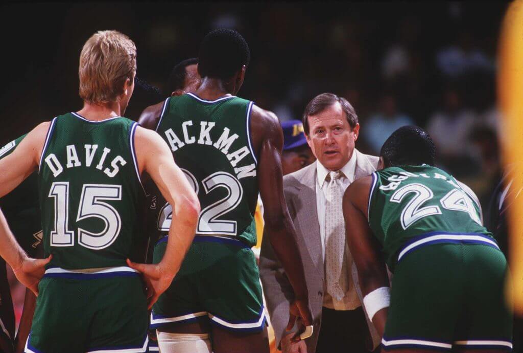 Motta, shown coaching Brad Davis, Rolando Blackman and Mark Aguirre of the Mavericks in 1987, had an infamously rocky relationship with the talented Aguirre. “It was not pleasant,” Motta said. (Rick Stewart / Allsport)