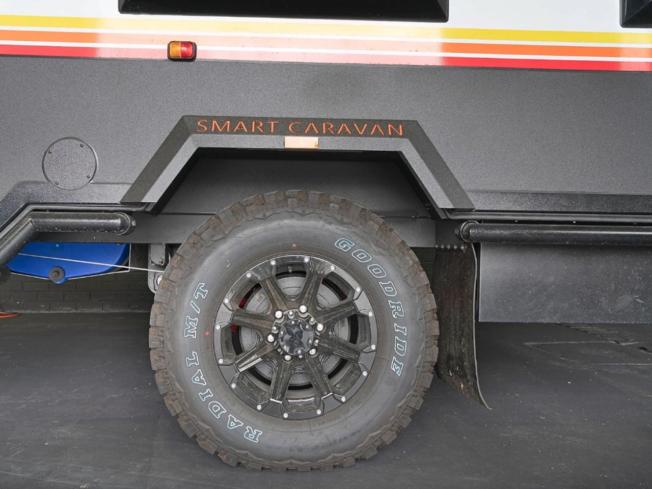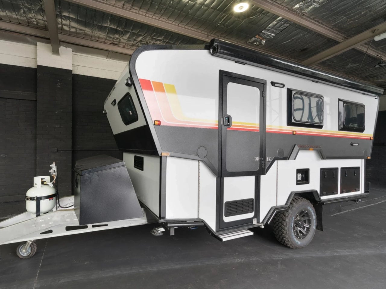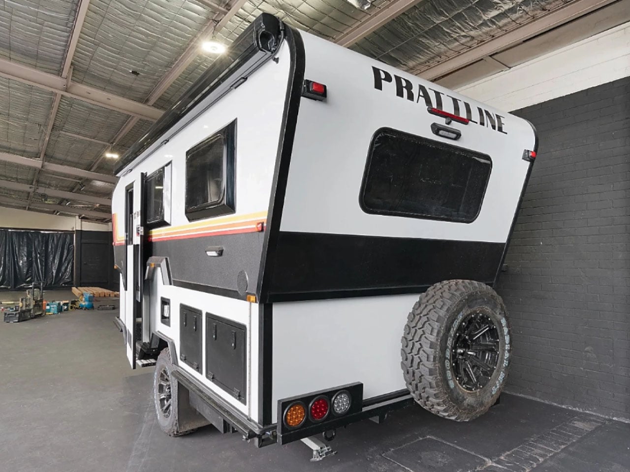 The Low Tow features a fiberglass frame, has double-glazed windows, and an anti-rot honeycomb flooring on the inside. Since it is built for off-roading, the caravan is based on a tapered galvanized chassis, features a 2,600 kg rated independent coil suspension, and twin shock absorbers. The caravan, characterized by a high ground clearance chassis, has a slide-out galley complete with a four-burner gas stove, sink, and an expandable worktop with drying rack below.