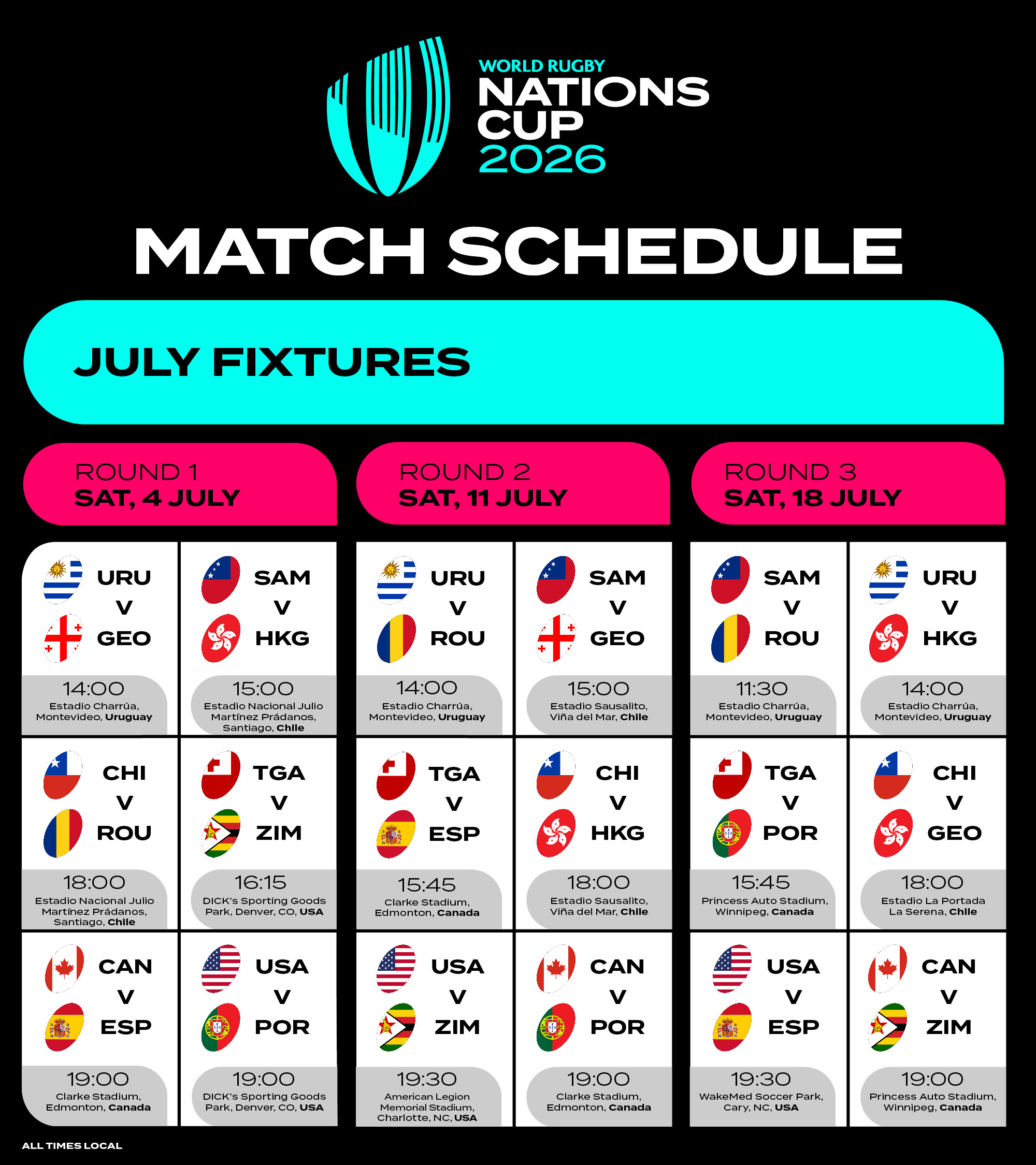 WORLD RUGBY NATIONS CUP 2026 – JULY FIXTURES