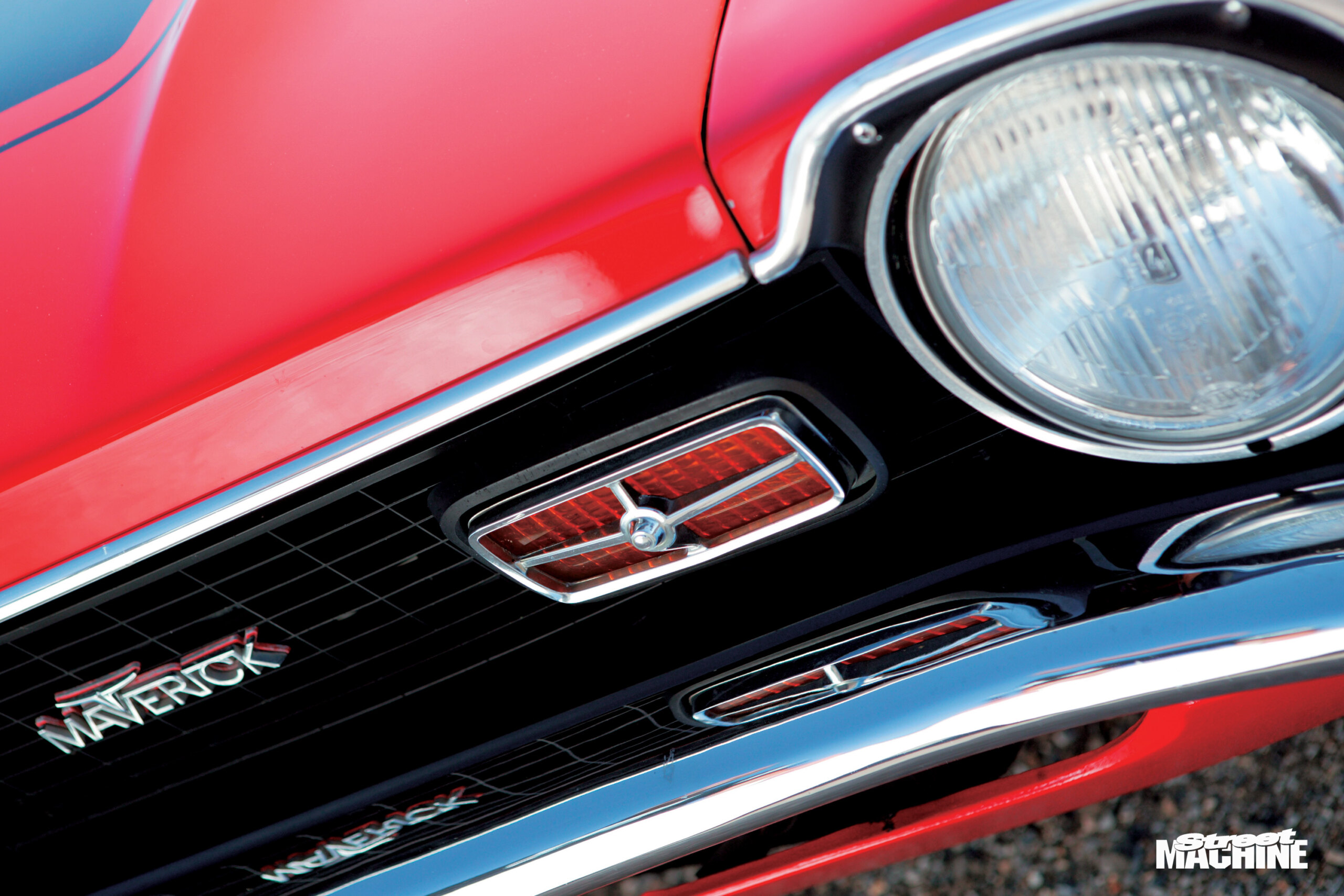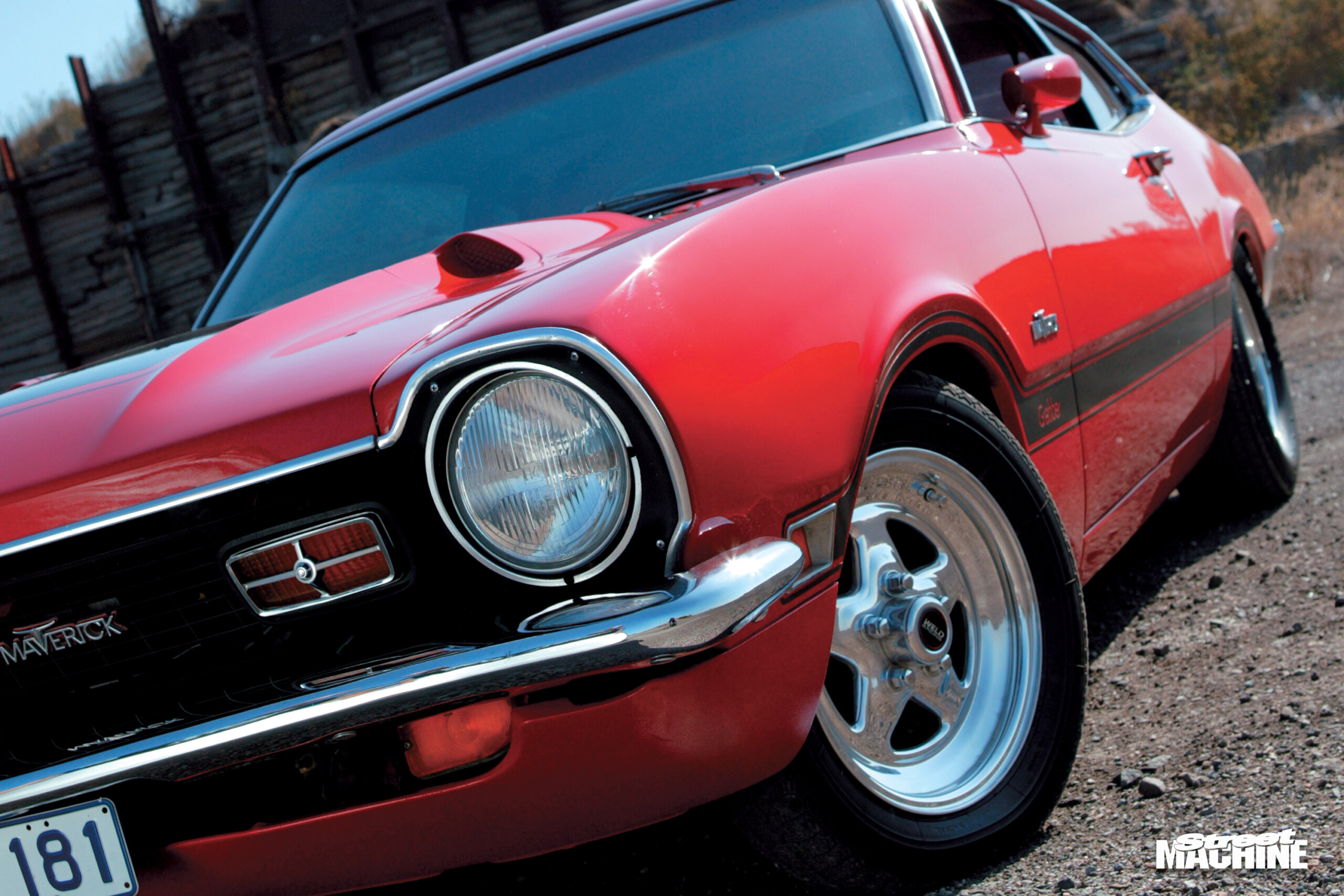 1972 Ford Maverick GrabberColour:Orange FlameGRUNTType:302ci Windsor V8Heads:StockCam:Crane Fireball hydraulicCarb:Holley 650 four-barrelDRIVETrans:Four-speed top loaderDiff:Nine-inchGRIPSuspension:Standard height (coils and leaves)Shocks:Koni adjustableBrakes:XA discs & calipers (f), stock drums (r)Steering:Recirculating ballINTERIORSeats:StockTrim:Recovered in red vinylSounds:PioneerROLLING STOCKWheels:Pro Star alloys, 15×3.5 (f), 15×8 (r)Rubber:Michelin XZX (f), American Racing G60 (r)
