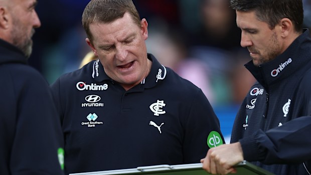 Blues coach Michael Voss is under pressure. AFL Photos via Getty Images