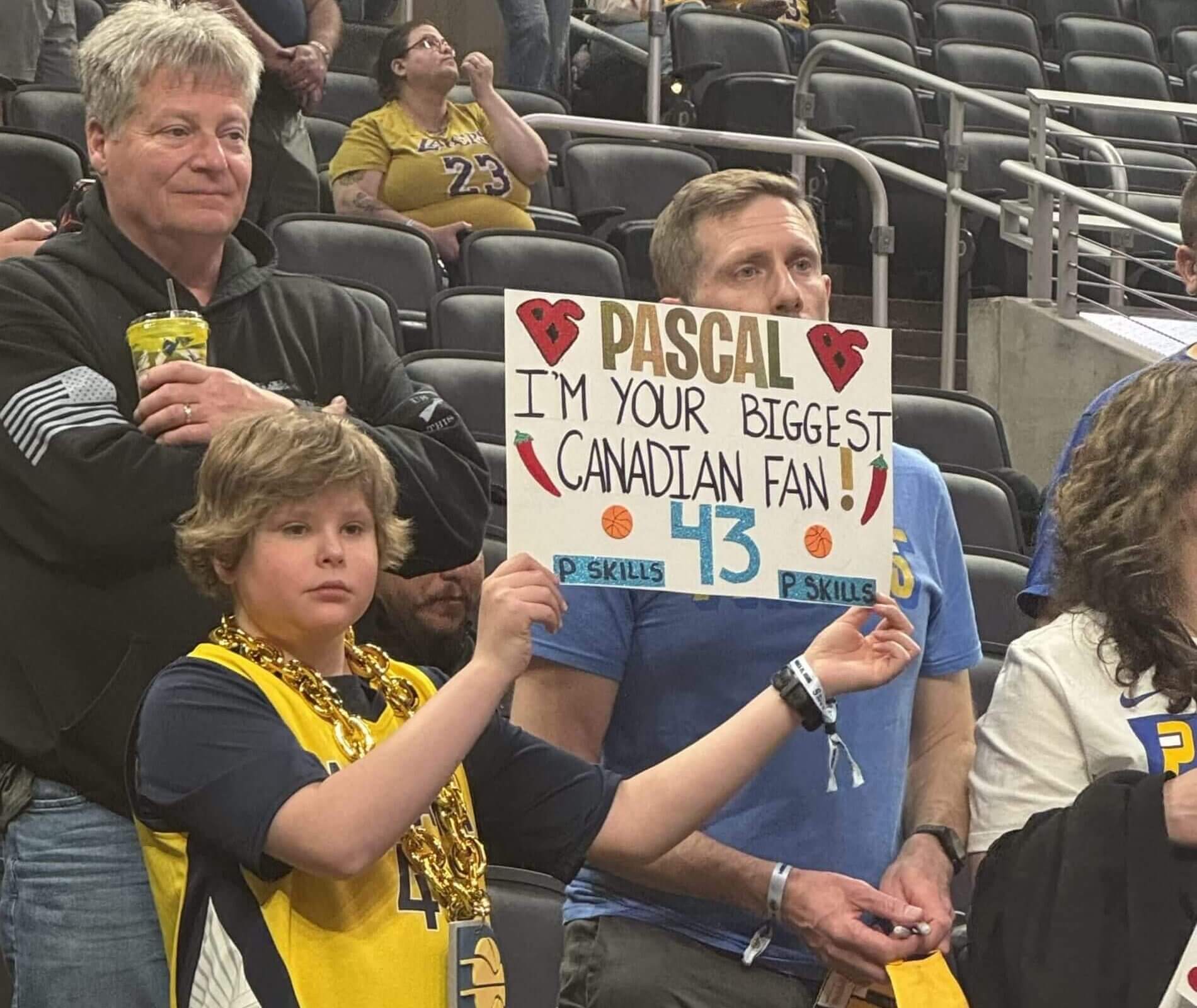 A young Pacers fan shows appreciation for Indiana forward Pascal Siakam. (David Aldridge / The Athletic)