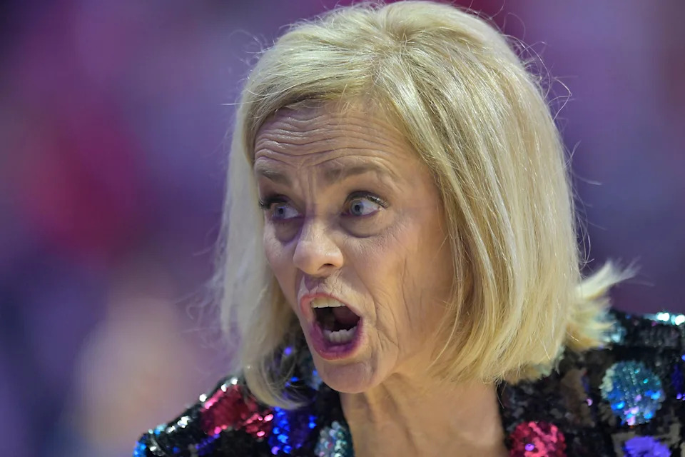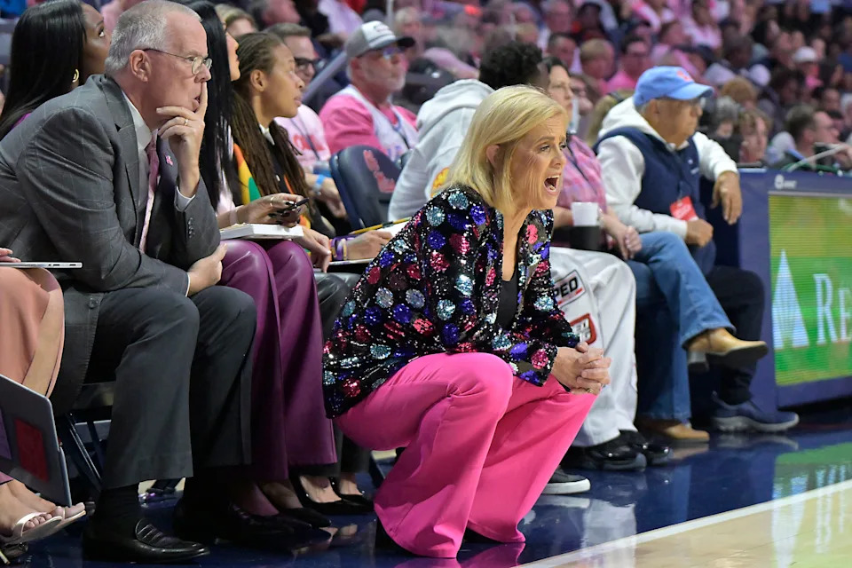 LSU head coach Kim Mulkey yells against the Mississippi Rebels in a NCAA women’s college basketball game at the Sandy and John Black Pavilion at Ole Miss in Oxford, Miss. on Thursday, Feb. 19, 2026.