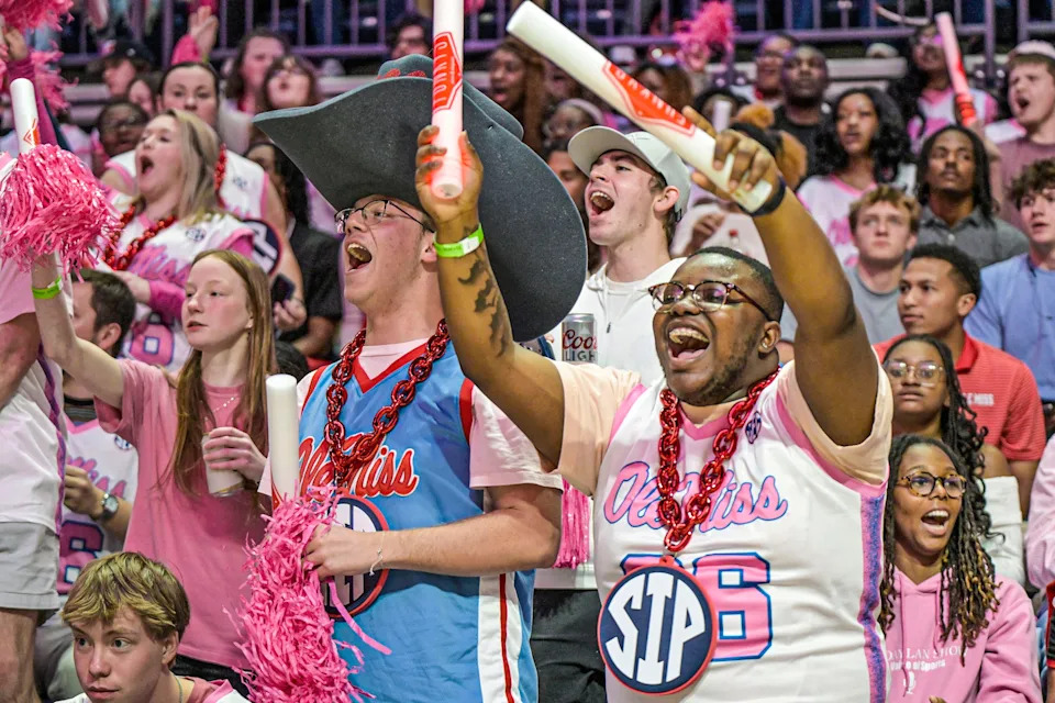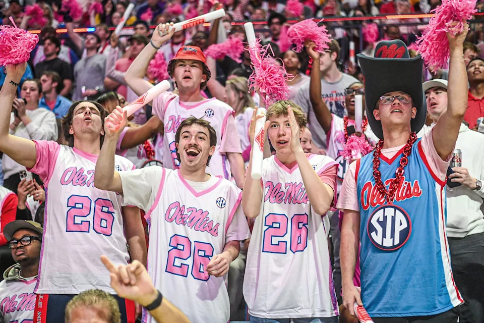 Students cheer before Ole Miss vs. LSU in a NCAA women’s college basketball game at the Sandy and John Black Pavilion at Ole Miss in Oxford, Miss. on Thursday, Feb. 19, 2026.