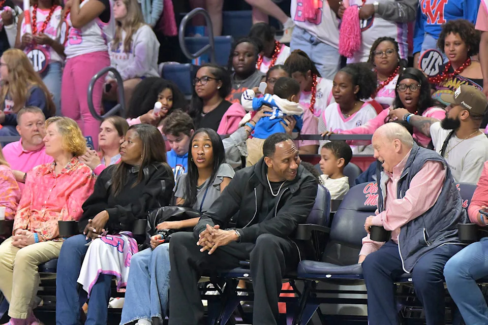 ESPN’s Stephen A. Smith talks with an fan at Ole Miss vs. LSU in a NCAA women’s college basketball game at the Sandy and John Black Pavilion at Ole Miss in Oxford, Miss. on Thursday, Feb. 19, 2026.