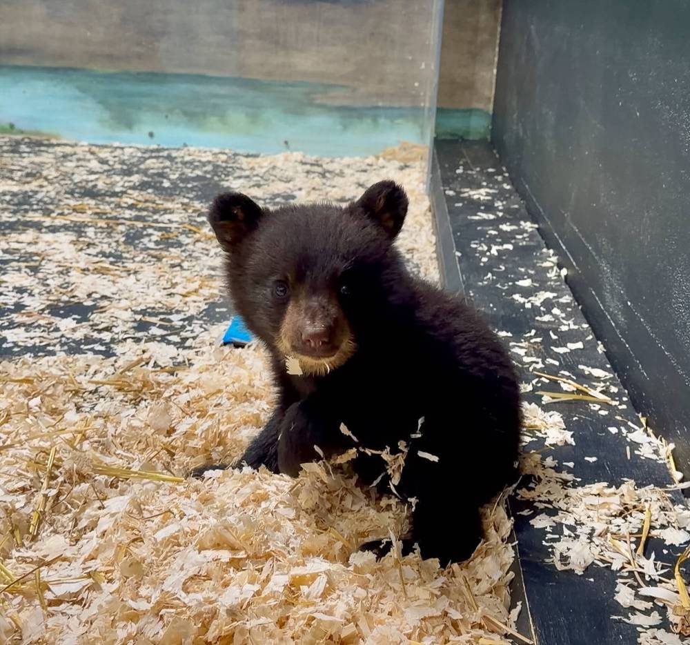One of three black bear cubs orphaned after someone shot their mother in their den.