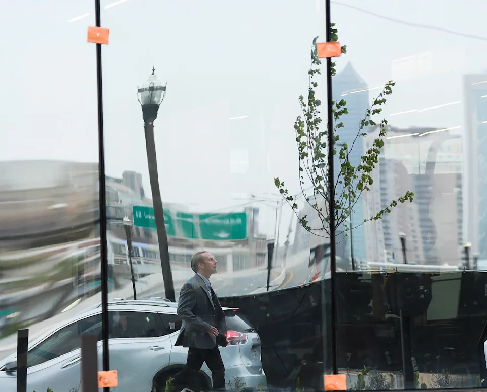 Channel Howell, an attorney with Foley and Lardner law firm, makes his way to the grand opening ceremony for the Jacksonville Jaguars’ newly opened business operations office at One Tower Court, Wednesday March 25, 2026. [Doug Engle/Florida Times-Union]
