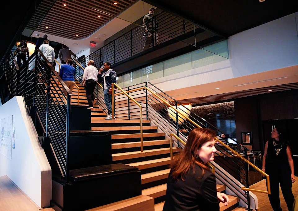 People take the stairs to the third floor in the Jacksonville Jaguars’ newly opened business operations office at One Tower Court, Wednesday March 25, 2026. [Doug Engle/Florida Times-Union]
