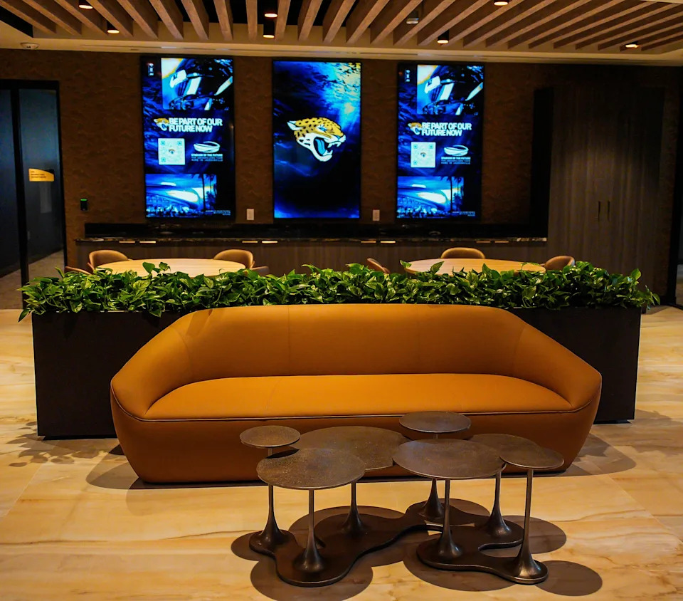 The lobby of the sales center in the Jacksonville Jaguars’ newly opened business operations office at One Tower Court, Wednesday March 25, 2026. [Doug Engle/Florida Times-Union]