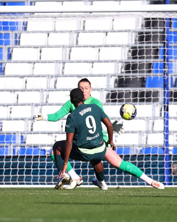There was no wilting from the team that were left a little exposed when they fought to take something from the games against City and Arsenal. The same fire that led Ho’s side to seek equalisers and risk the margin of their defeats growing was on show. They were rewarded for that spirit seven minutes after the restart. Kadeisha Buchanan was punished for needlessly bundling over Matilda Vinberg out wide and Eveliina Summanen’s free-kick floated over everyone, including Hannah Hampton, who misread the flight of the ball, and in.