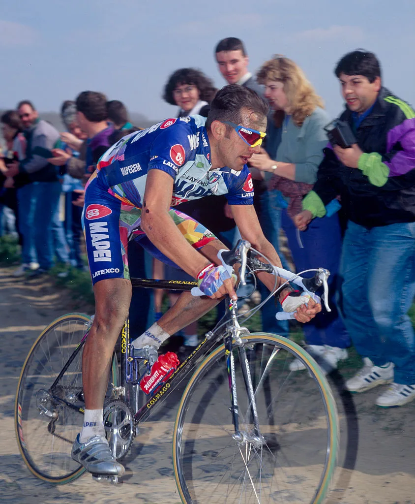 In 1995, Franco Ballerini was the first rider to pilot a carbon bike to Paris-Roubaix victory. His Colnago C40 was the first in a line of Colnago C-series bikes that continues to this day.