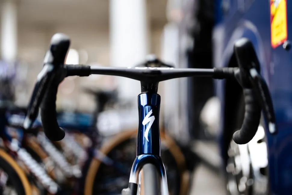 The clearance for the Tarmac SL8 is 32mm, the same width used by Vollering throughout the cobbled Classics.