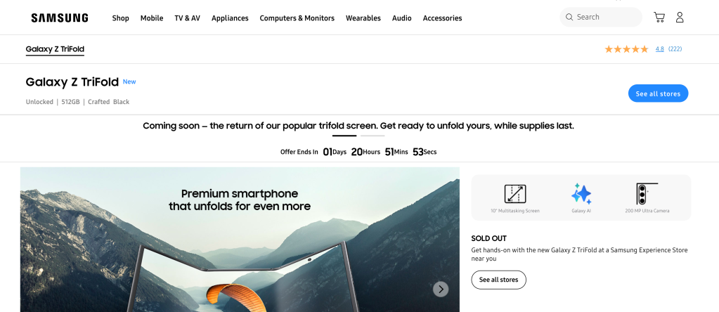 As mentioned, this will probably be the last time to buy a TriFold directly from Samsung.