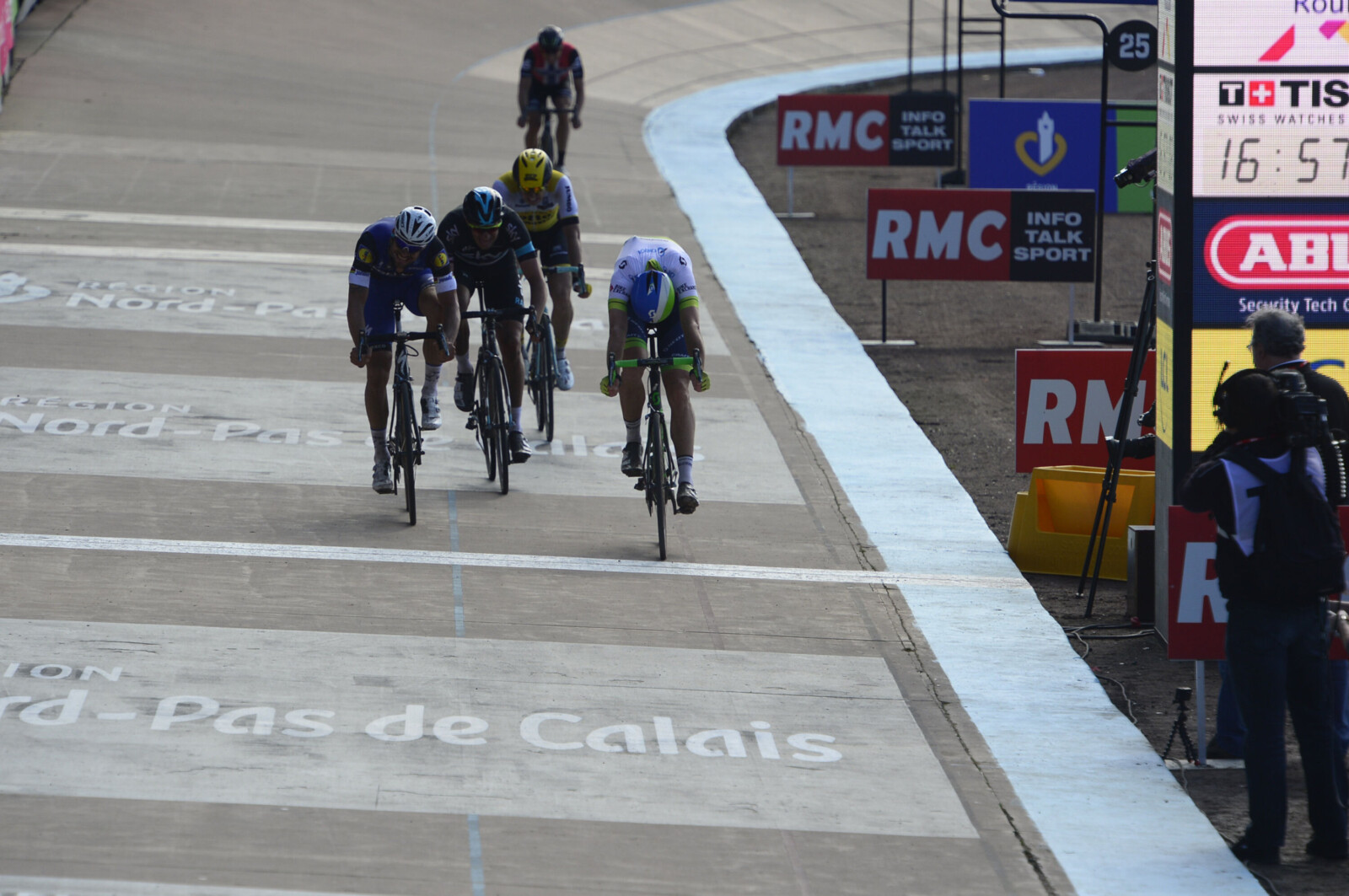 Emerging into the velodrome Hayman, not known for his sprinting prowess, was able to time his sprint to perfection, and hold off four-time Paris-Roubaix winner Tom Boonen to cross the line as victor by a solitary bike length.