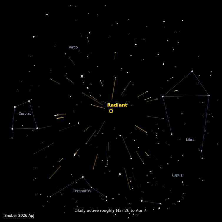 This diagram shows the radiant – the point in the night sky from which meteors of the newly discovered shower appear to originate.