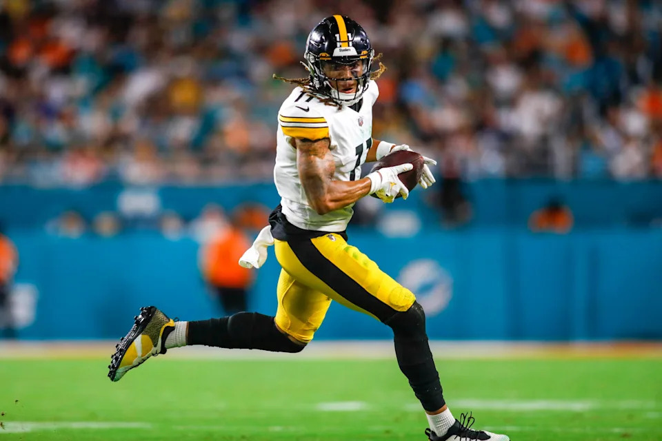 Oct 23, 2022; Miami Gardens, Florida, USA; Pittsburgh Steelers wide receiver Chase Claypool (11) runs with the football during the second quarter against the Miami Dolphins at Hard Rock Stadium. Mandatory Credit: Sam Navarro-USA TODAY Sports