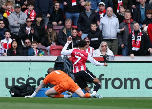 Fewer than 90 seconds had ticked by after Everton’s rugby-esque up-and-under that launched proceedings when Jordan Pickford’s outstretched leg felled Kevin Schade as the German sped past. The award of a penalty prompted no more than a resigned grimace from the England goalkeeper, who dived the right way, but was unable to keep out Igor Thiago’s spot-kick.