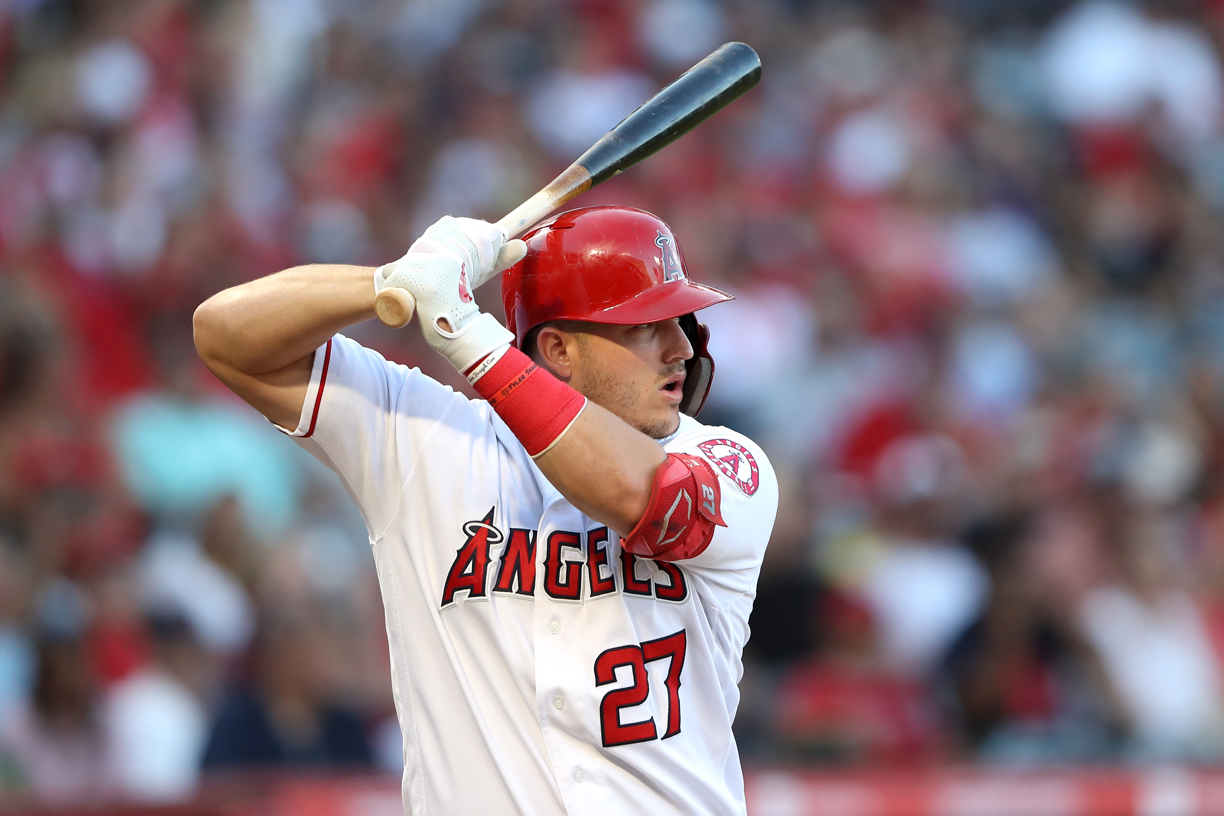 GettyMike Trout #27 of the Los Angeles Angels of Anaheim at bat during a game against the Boston Red Sox at Angel Stadium of Anaheim.