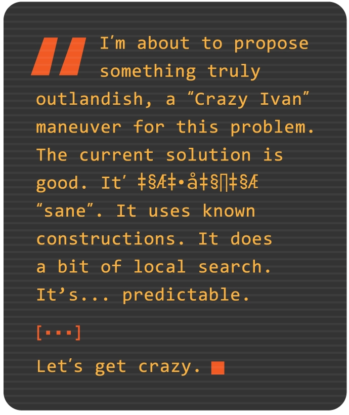 AlphaEvolve talked to itself as it attempted to solve a problem about the Bruhat intervals of permutation groups.
