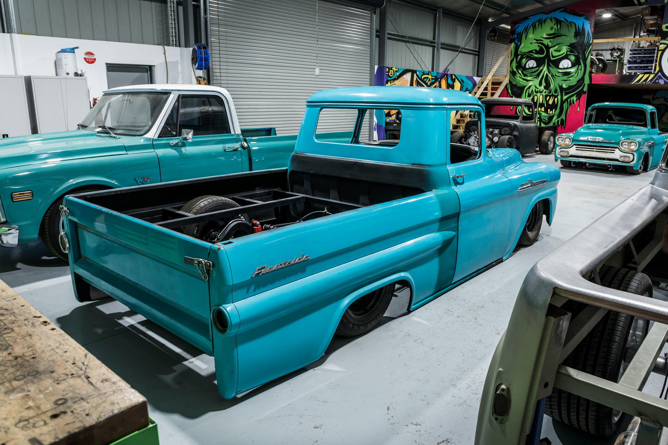 Another Fekete Fabrications build to be unveiled at MotorEx ’26 is a customer’s 1958 Chevy 3100 truck, which has been given a unibody conversion, all-new chassis, airbags, and rear-mounted turbos under the tub to feed the LS up front. It’ll be sitting on one-off billet wheels, and will also be a fully street-legal machine