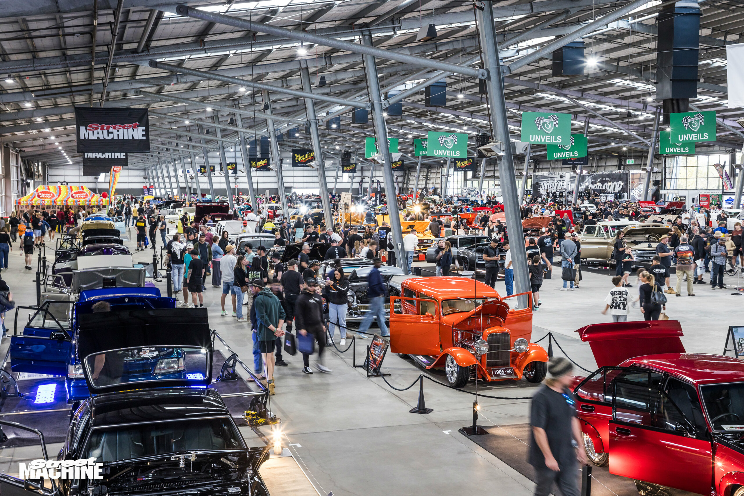 During the day, punters who enter via Gate 1 at the Epsom Road end of the showgrounds will be thrown head-first into our own Street Machine Custom World. We’ll have a merchandise stand to grab all your swag, as well as two of our old SM giveaway cars on display: VUFORU and the ‘Sony Scorcher’ two-door EA Falcon!