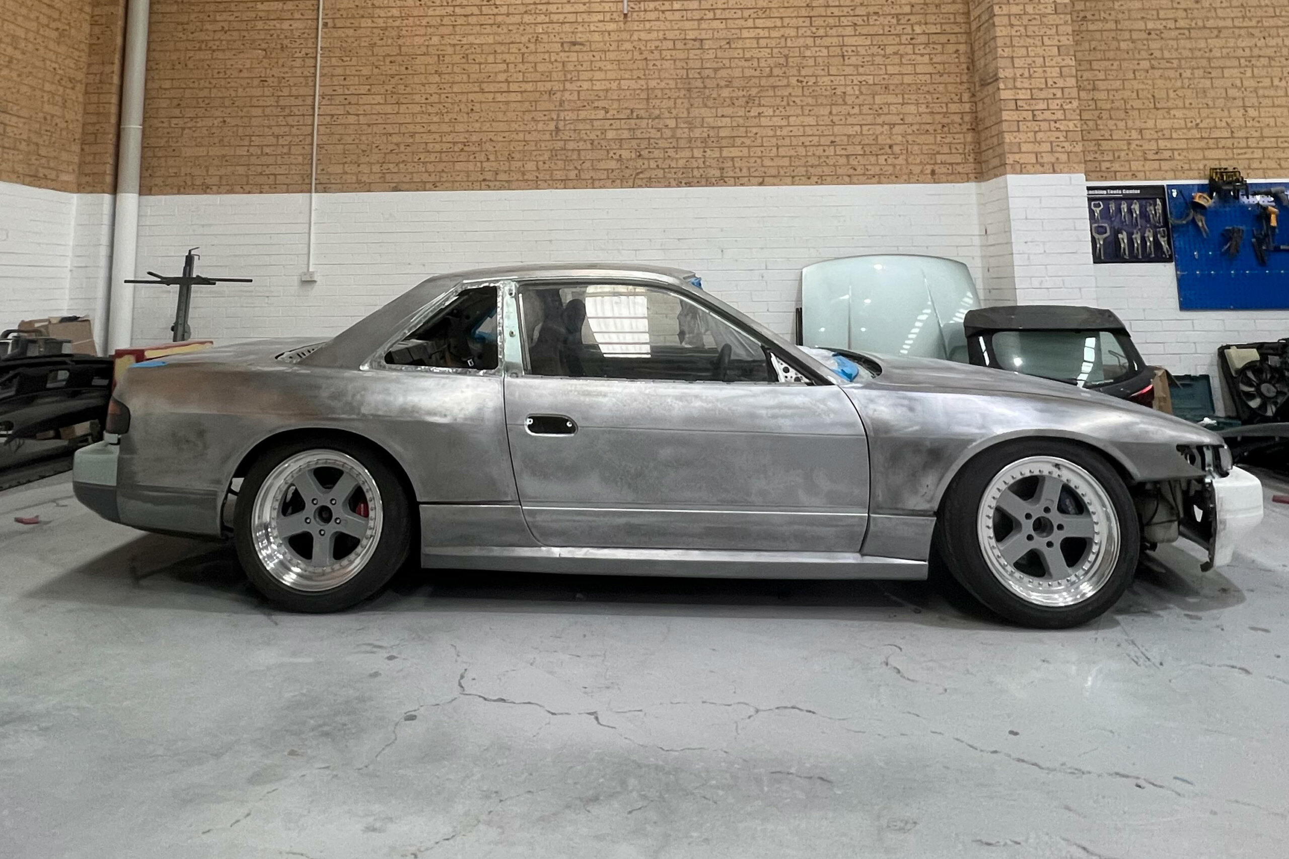Kirk Schmidt is unveiling an S13 Nissan Silvia, built with a twist! “It’s a muscle car-inspired take on a Japanese coupe,” he says. “I hope this car will earn some respect of older petrolheads and younger alike. It’ll still be SR20-powered, but with a full-steel widebody and plenty of unique touches inside and out”