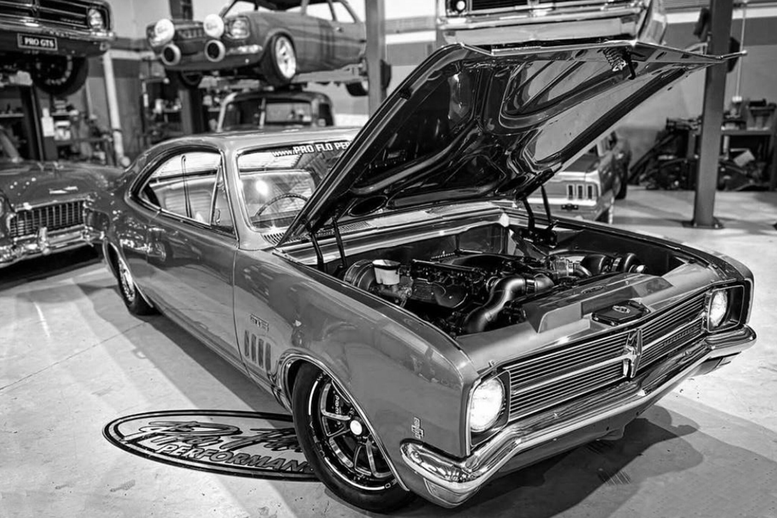 It wouldn’t be an unveiling without a ProFlo Performance car in the mix. This one is Brett Fletcher’s HK Monaro, which rocks a beastly single-turbo 427 LS conversion. In typical ProFlo fashion, it’s slammed on some 15×10 rear meats