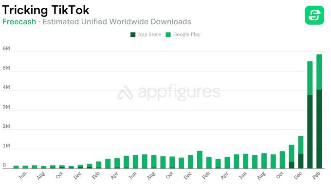 The question remains how an app like Freecash was able to game social media ads and other partnerships to rise to the top of the app store. The app’s downloads shot up in January 2026 to reach 5.5 million across global app stores, up from 876,000 in October 2025, according to data from market intelligence firm Appfigures.