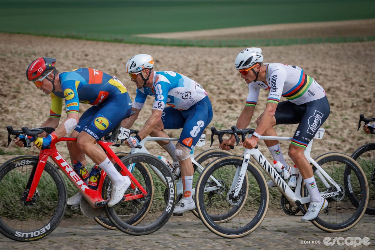 Since the turn of the disc-brake era, and even more so in the past few years, the bikes at the front of Paris-Roubaix have been decidedly ordinary. Long gone are the days of suspension-equipped bikes like Pinarello’s K8-S, and even Specialized’s bike that is named after the race made its final journey to the velodrome in 2023.