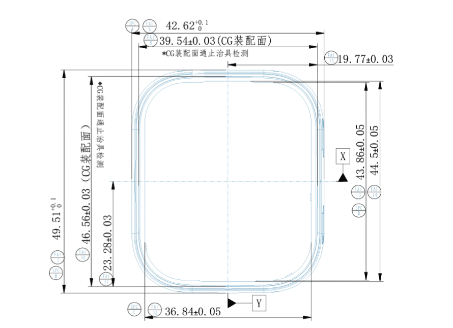 The FCC paperwork also includes an internal antenna layout for what appears to be a square watch design. The drawing shows an internal footprint of roughly 49.5 x 42.6 mm. This should not be treated as confirmed case dimensions, but it does suggest the device may have a relatively large chassis, especially when paired with that battery size.