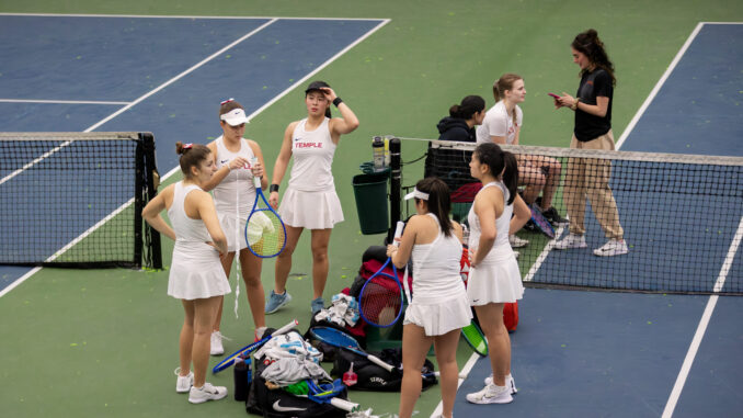 Temple Women’s Tennis during a match against Morgan State on Feb. 21. | JUSTIN ALEX / THE TEMPLE NEWS