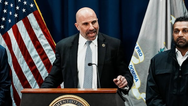 Christopher Raia, assistant director in charge of the FBI’s New York field office, spoke Thursday after law enforcement arrested 34 people for alleged involvement in what he described as ‘two separate illegal poker and sports betting schemes’ with ties to Mafia crime families.Earned more than $20M U.S
