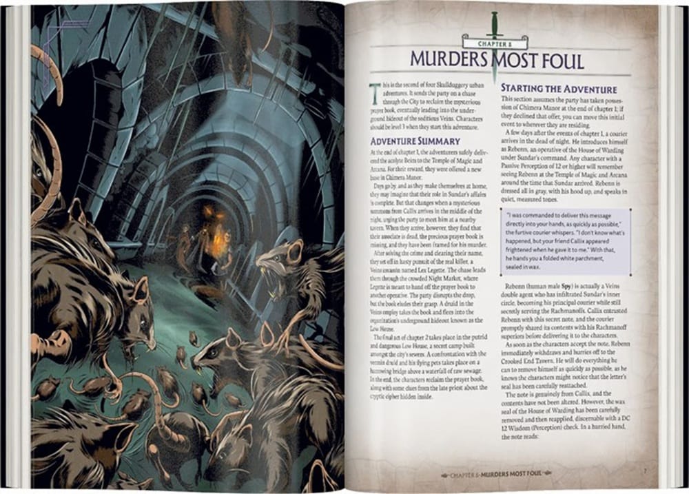 So what is Skullduggery?Skullduggery is a 5E urban fantasy companion, filled with new city-inspired subclasses, backgrounds, feats, spells, and equipment. In addition, it comes with city establishment and organization ideas and 4 chapters of an all-new urban-themed Adventure that can be dropped into any campaign: The Oppression of Blood.