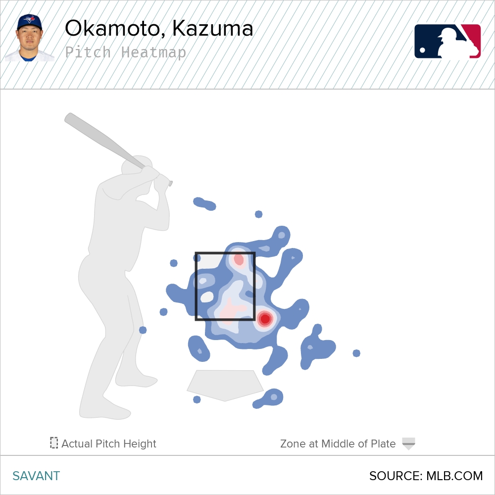 Of course, these transitional challenges were expected. When the Blue Jays signed Okamoto, they anticipated an adjustment period as he acclimatized to a new style of play, unfamiliar opponents, and different playing surfaces than he was accustomed to in Japan. To say nothing of the premium velocity and supercharged pitch movement hitters see far more frequently in MLB than they do in NPB.