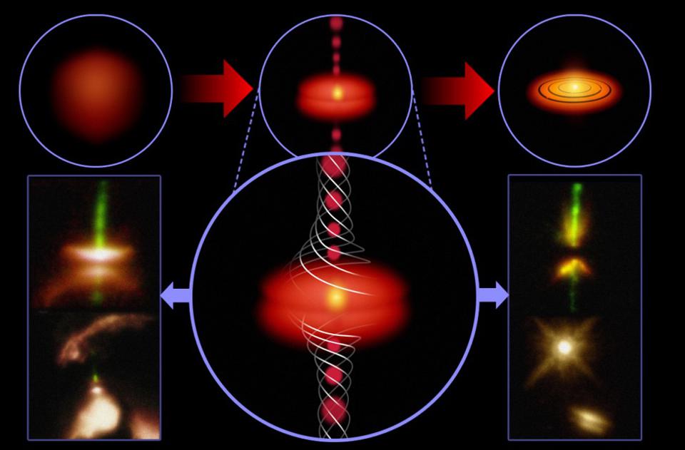 Assuming you have enough heavy elements in the gas cloud that’s contracting, fragmenting, and collapsing to form new stars, you’re going to wind up with not just a massive, hot clump of matter — a protostar — that will eventually evolve into a full-fledged star, but there’s going to be a disk of material surrounding that star: a protoplanetary disk. Before and up to the moment where the star is truly born, when nuclear fusion ignites inside its core, that disk remains uniform, meaning there are no “clumps” that form in the disk. You need clumps to arise in order to form planets, because those initial clumps, arising from instabilities in the disk, are where gravitation will eventually work to pull in the surrounding matter.