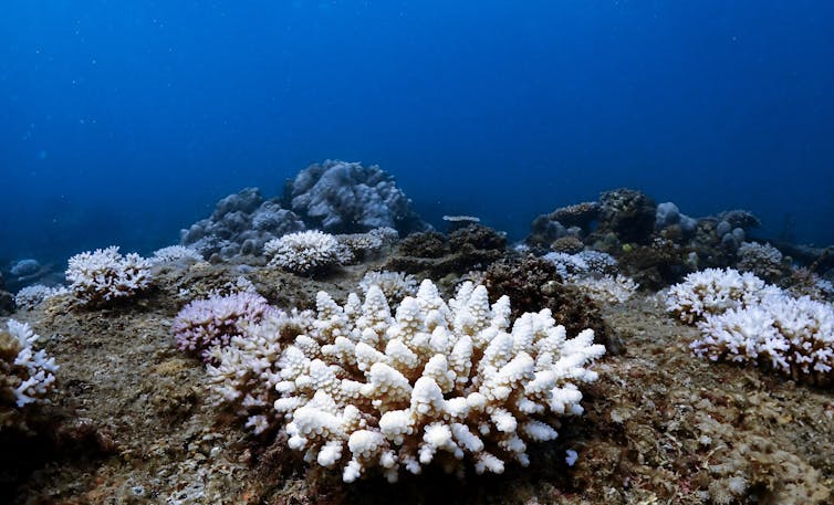 Mass coral bleaching during an intense marine heatwave.