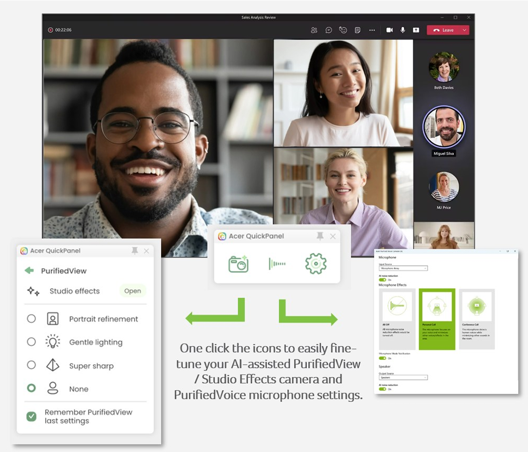 Acer PurifiedView – adjust your camera settings easily using Studio Effects to enable portrait refinement or an Avatar.