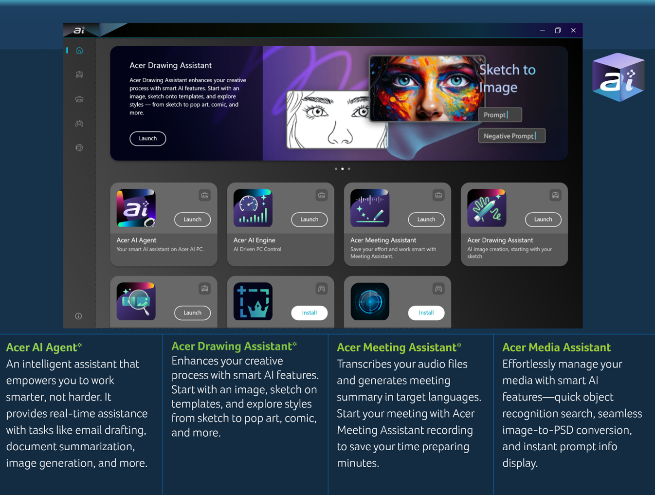 Acer AI is among the best manufacturer-included AI software I have ever used. It actually has some useful functionality, something rarely seen. It still includes the mostly useless Microsoft AI software but I doubt you will ever use that considering how much better the Acer software.