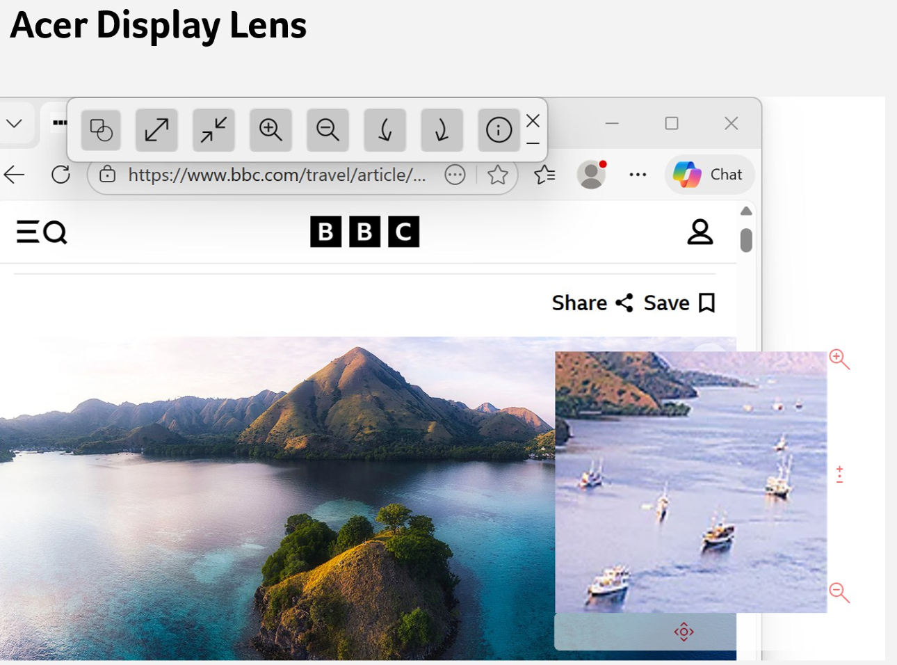 Acer Display Lens – brings small text and image details into focus with AI zoom and rotation tools.