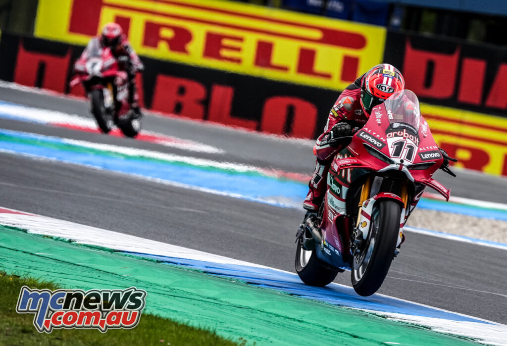Behind the leading trio, Ducati’s dominance only became more emphatic. Álvaro Bautista made the key move for fourth on Alex Lowes at Turn 16 on lap four and never relinquished the position, capping a weekend in which he finished fourth in all three races. Team-mate Yari Montella came through strongly from eighth on the grid and used his pace advantage to move into fifth around mid-distance, while Lorenzo Baldassarri climbed from 10th on the grid to sixth after picking off riders ahead with a series of aggressive passes. That gave Ducati a clean sweep of the top six in the 21-lap finale, repeating the feat they managed in Race 2 at Phillip Island last year.