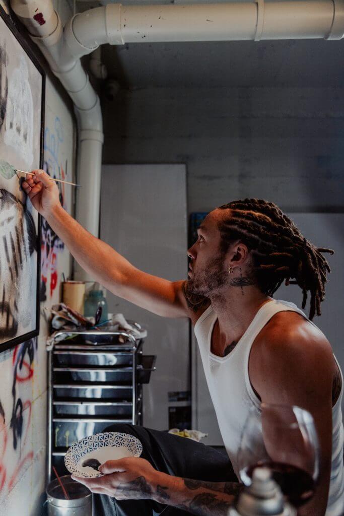 The practice comforts him. “Being able to take out that emotion, and create something beautiful with it,” Gordon says. “Before painting, it’s almost like there’s an angst, and almost like an anxiety … and then you just flow, your picture starts to come to fruition. It’s this level of fulfillment, almost like a release.”