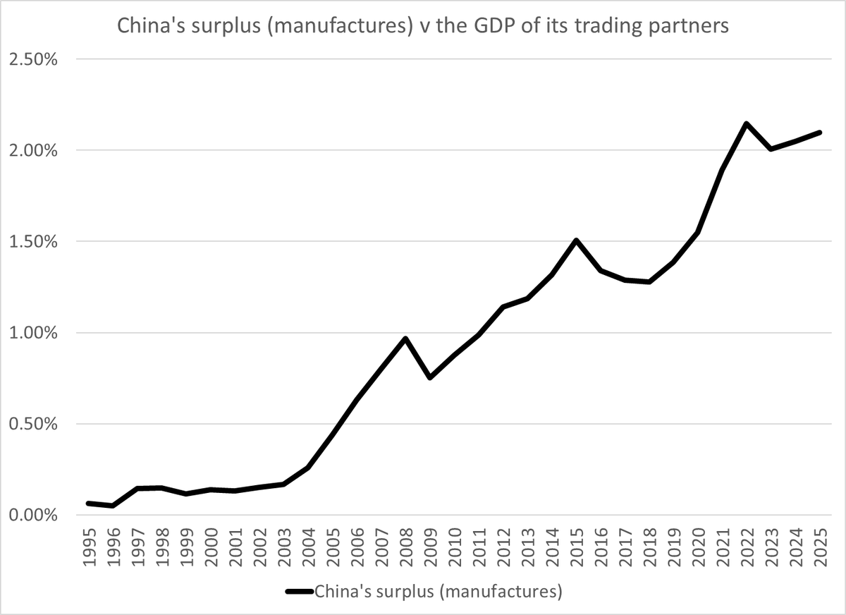 Of course, Trump’s rampage in 2025 is not unconnected to America’s trade deficit. But his campaign is motivated by arguments that have little to do with sophisticated balance of payments analysis. Nor was there a powerful populist backlash underway in America in 2025 loudly clamoring for “Liberation Day”. There is a strange disconnect between Trump’s tariff demands and any concrete pressures arising from America’s political economy. One of the oddities of Trump’s trade measures is that China has ended up with a more modest tariff level than many others.