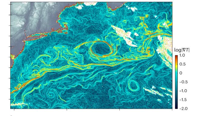 The GOFLOW team trained an AI model to recognize how surface temperature patterns shift as water moves below. The neural network model learned from advanced computer simulations of ocean circulation, then applied that knowledge to real satellite imagery from the North Atlantic collected by the GOES-East weather satellite. The researchers tested the method against shipboard observations in the Gulf Stream and found that GOFLOW matched existing measurement techniques while revealing much finer detail, capturing smaller, more energetic features linked to vertical mixing.