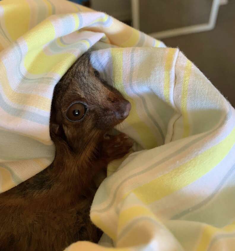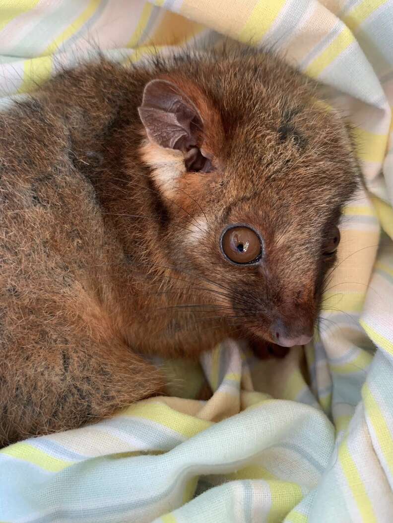 Rachel gently transferred the tiny animal into a woolen pouch and placed her in a travel carrier. She then conducted a thorough search for the possum’s mom, but didn’t have any luck finding her.