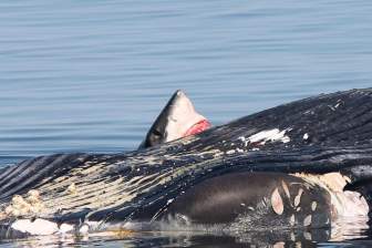 Whale watching tour gets front-row seat to shark ‘aggressively’ eating carcass