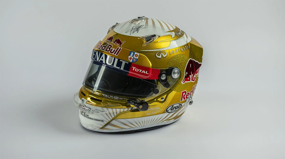 This Arai GP6-RC was created for Sebastian Vettel to wear at the 2012 German Grand Prix. Designated SV-R-07/12, it was painted by Jens Munser and signed by Vettel. It’s estimated at between £18k and £20k at the Broad Arrow Fall Memorabilia Online Auction 2025. Other helmets of note in include a 1996 Martin Brundle (est £4k-£5k), two Ralf Schumachers, one from 2001 and the other from 2006 (both £4k-£6k), a 2007 Jenson Button (est £10k-£12k), a 1991-92 Gerhard Berger (est £6k-£8k), 1996 and 2002 Eddie Irvines (£4k-£6k) and more besides.