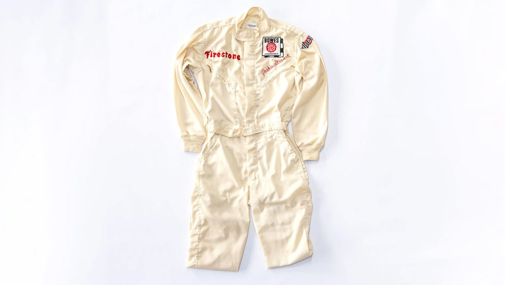 This racing suit was produced for Jackie Stewart’s attempt at the 1966 Indy 500. Although not worn in the race itself, period photographs show it being used in a practice or qualifying session. It’s estimated at between £7k and £9k. Other racing overalls of note at the Broad Arrow Fall Memorabilia Online Auction 2025 include a couple of Justin Wilson items, plus a Damon Hill item from 1999 estimated at between £3k and £4k.
