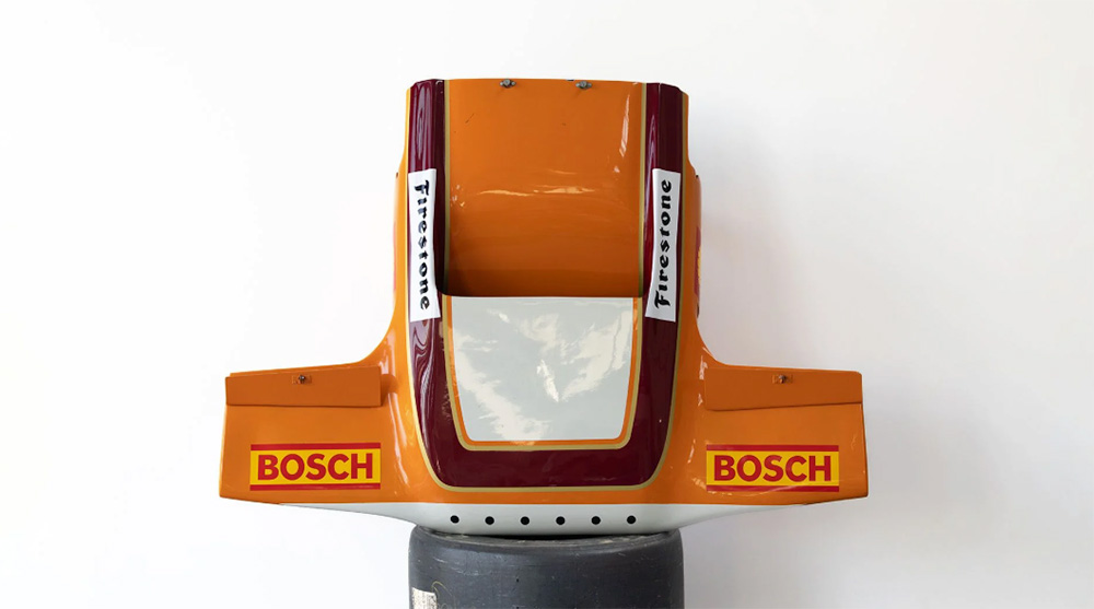 Among the car parts available at the Broad Arrow Fall Memorabilia Online Auction 2025 is this March 701 front wing/nose-cone. It is believed to have been fitted to South African John Love’s March 701, and driven in period Grands Prix and non-Championship events. It’s estimated at between £1200 and £1700.