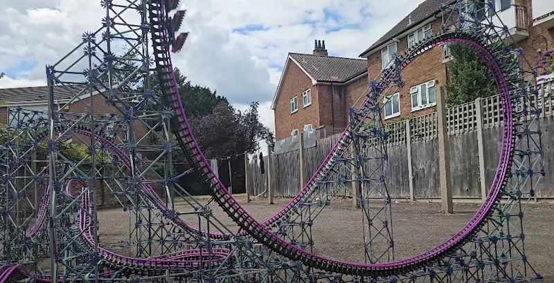“One I saw that … really inspired me was they built a 20-foot-high recreation of Kingda Ka, the old world’s tallest roller coaster. It was always a goal of mine to one day beat that,” Perkins said. “I did officially this year, I built a 27-foot-tall K’Nex roller coaster, which is quite cool.”