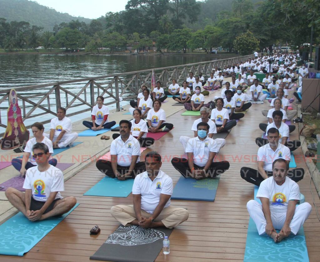 Participants practise yoga to mark International Day of Yoga 2022 at the Chaguaramas Boardwalk. – File photo by Angelo Marcelle